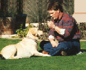 9) Clicker trained dogs are unreliable and "throw" behaviors at you, so you never know when they will offer the wrong behavior, just to get a treat. It is true that clicker trained dogs are more variable in the learning stages of a behavior than traditionally trained dogs -- that's one of the great strengths of the method. However, using corrections and reinforcements to maintain a learned behavior are no different with a clicker dog than with a traditionally trained dog. i.e. If your dog starts throwing behaviors at you during a performance, just say, "NO". He will soon get the idea that creativity is for training and precision is for performance. As for reliability, there are several clicker-trained, FEMA certified, Search and Rescue dogs -- and several hundred clicker trained, working service dogs. Reliability is not really dependent on whether you use a clicker or food in training. As with all methods of training, much of the reliability is a matter of how well the trainer crafts the training to match the dog's temperament. Note: See my comment about “all postive” training, above. Reliability also depends on teaching a dog that obedience is required - or else there will be an unpleasant consequence. The fact that you taught a behavior with positive reinforcement and then added the element of “you have to do this” isn’t something to argue about - it’s simply one of many sequences and blends that can produce greatness or garbage, depending on the dog and the trainer’s skill.